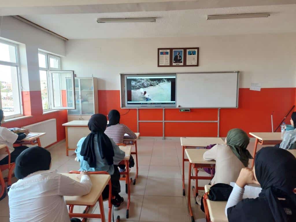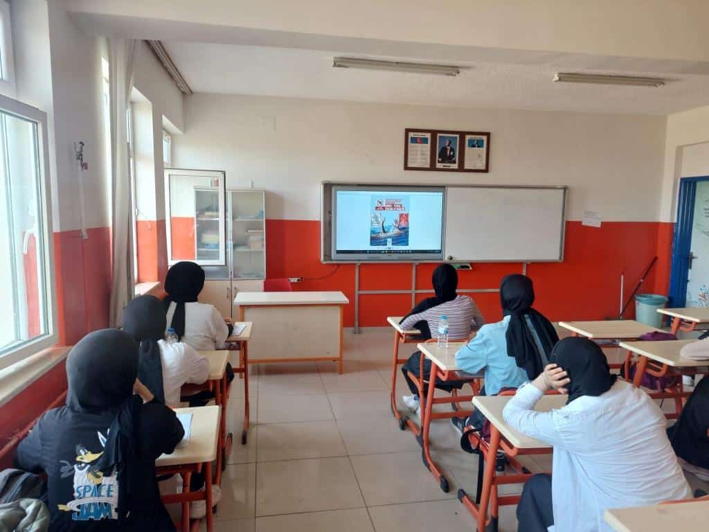 Valilik tarafından gönderilen kısa video tüm sınıflarda izletildi, ayrıca sulama kanalları, baraj gölleri ve göletlerde yüzmenin tehlikeleri hakkında hazırlanan afişler akıllı tahtalarda öğrencilere gösterildi. Öğretmenlerimiz tarafından rehber metin sınıflarda okunarak öğrencilerin konuya dair farkındalık kazanmaları sağlandı.